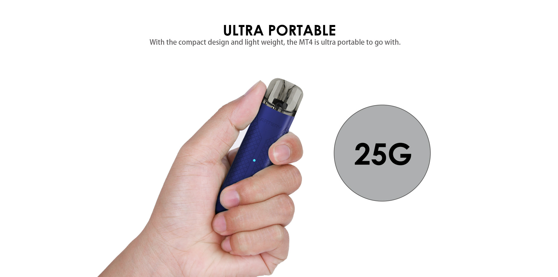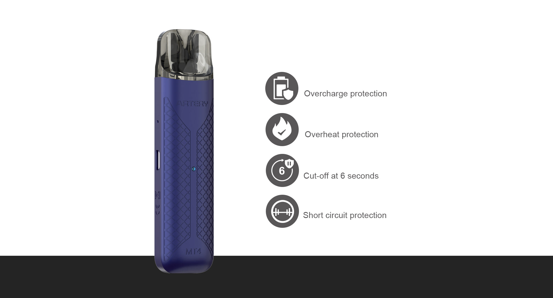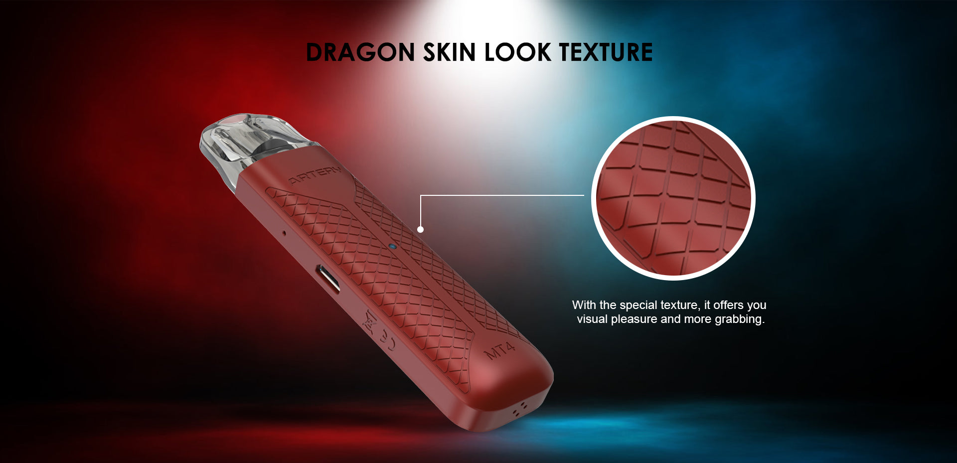 Artery MT4 Kit è progettato per i principianti dello svapo che amano lo svapo per MTL. È un dispositivo MTL Pod entry-level di facile utilizzo e dal prezzo ultra-economico. Artery MT4 Pod System Kit è un kit pod ultra portatile con design compatto e leggero. Il kit Pod MT4 di Artery è realizzato in PC e PCTG con trama di pelle di drago e vernice di cottura per una pittura più accattivante e duratura. È costituito da una cartuccia pod da 2 ml con design di riempimento laterale e batteria interna da 480 mAh con potenza massima di 11 W. Artery MT4 Pod utilizza lo stesso materiale della bobina di Pal SE e offre un sapore troppo fresco e denso ad ogni espirazione. Cavo A1 parallelo kanthal + cotone fibra di alghe + sistema di flusso d'aria finemente sintonizzato per offrire un sapore eccezionale.