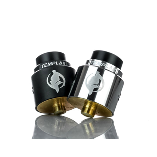 Il Atomizzatore Augvape Templar RDA è un atomizzatore di gocciolamento ricostruibile visivamente impressionante con un mazzo e una base placcati in oro 24K a fianco di un sistema di bloccaggio rapido e conveniente. Il Templar RDA misura 24 mm di diametro con un profilo ben bilanciato che enfatizza la semplicità esteriore. Dentro, il mazzo di costruzione del Templar è completamente placcato in oro 24K per presentare un aspetto visivamente sorprendente mentre migliora le prestazioni attraverso una maggiore conduttività. Il mazzo due post build è organizzato in un esclusivo sistema Velocity Clamp Snag che presenta una grande vite Philips per montante e un singolo spazio per slot da 2,5 mm per 1 mm per post. Il pozzo del succo del ponte misura 4 mm di profondità. Il flusso d'aria entra attraverso due airslots con due tipi, un airlot lungo che misura 3 mm per 1 mm e uno airslot corto che misura a 2 mm per 1 mm e può essere regolato tramite il cappello aria superiore. Il Templar di Augvape utilizza un apposito puntale a drip tip 810 e include una punta a drip tip in Delrin. Il tappo superiore del Templar può essere sostituito con un tappo superiore smerigliato con flusso d'aria reindirizzato che misura a 3 mm per 2 mm. Presentando un sistema pulito e altamente funzionale con lavorazione e produzione di qualità, il Augvape Templar 24mm RDA è un ottimo RDA ad alte prestazioni ad un prezzo altamente competitivo.