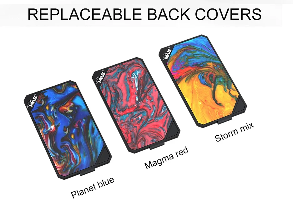 MyVapors Myuz SS5 Kit è caratterizzato da pannelli in resina bifacciale colorati che offrono prestazioni come il gas planet-Jupiter. Alimentato da due batterie 18650, l'uscita può raggiungere fino a 220W. Viene fornito con un ampio schermo a colori HD che visualizza dati specifici. La porta della batteria magnetica offre un effetto visivo brillante e di grande effetto, inoltre facilita la sostituzione della batteria. Per quanto riguarda il tankMyuz SS5, viene fornito con una grande capacità di 6,5 ml e un design di riempimento superiore super conveniente. Oltre alla rivoluzionaria bobina SS5-N e SS5-M, la Myuz SS5 ti regalerà un'esperienza inaspettata.