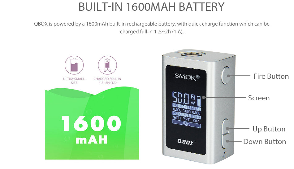 SMOK V-Fin 160W TC Box Mod è un elegante box mod con un esclusivo motivo intarsiato, misura 85 mm x 56 mm x 31,5 mm. Il SMOK V-Fin 160W Box Mod è costruito per adattarsi ergonomicamente, implementando un guscio in lega di zinco di qualità superiore con impronte di design modernizzate per un capolavoro senza tempo. Simile a molti degli iconici sistemi di vaporizzazione SMOKTech, il V-FIN ha un grande braccio laterale per un design pulsante stealth. Il successo è racchiuso nell'imponente batteria interna da 8000 mAh, che offre un utilizzo operativo senza precedenti per un dispositivo per tutti i giorni. Alimentato dal nuovissimo chipset intelligente SMOK per dispositivi compatti, SMOK VFIN può alimentare fino a 160 W di potenza massima e un'ampia gamma di regolazioni di uscita dinamiche come la modalità di memoria. L'accoppiamento con il dispositivo è l'atomizzatore TFV12 Big Baby Prince, che implementa una capacità massima di 6 millilitri, un nuovo sistema di riempimento d'aria incernierato con chiusura a pulsante, doppio controllo del flusso d'aria a doppio fondo e l'utilizzo del sistema TFV8 Baby Coil. Viene fornito con 5 colori.