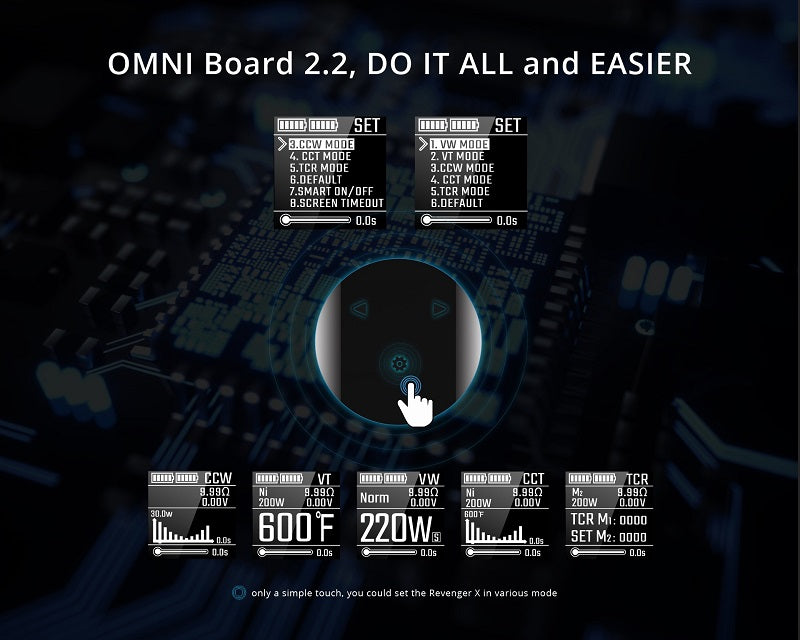 Vaporesso Revenger X 220W TC Box Mod una solida combinazione di design, funzionalità e convenienza. Questo dispositivo è incredibilmente versatile e ti consente di svapare in diversi modi per assicurarti di ottenere la migliore esperienza possibile. Con la sua lega di alluminio e il telaio per l'etichettatura In-Mold, Revenger sembra altrettanto buono di come vape. Aggiungi lo schermo OLED da 0,91 che si integra perfettamente nel pannello IML e ottieni una mod estremamente elegante. Tutto è alimentato da due batterie 18650 (non incluso nella spedizione) che possono essere caricate utilizzando la porta USB integrata e il sistema di ricarica rapida da 2,5 A.