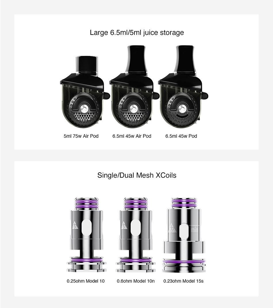 Il VapX Geyser Pod System Kit è un vero dispositivo rivoluzionario per toccare con mano la tecnologia al top. Alimentato da una singola batteria 21700, il VapX Geyser raggiunge una potenza massima di 100 W. Il VapX Geyser è anche compatibile con la cella 18650 (con custodia). Il kit VapX Geyser 100W pod attacca due pod da 5 ml 75 W Air Pod e 6,5 ml 45 W Air Pod. L'Air Pod da 5 ml da 75 W è ideale per lo svapo Loose MTL / Loose DL, mentre l'Air Pod da 6,5 ml da 45 W è perfetto per lo svapo Tight MTL / Restricted DL. Il convertitore buck-boost offre un output davvero stantio e coerente al VapX Geyser. Il kit VapX Geyser Pod adotta una costruzione in lega di magnesio per un peso più leggero. Quindi una batteria esterna agli ioni di litio non renderà il VapX Geyser pesante nei palmi. Puoi passare da uno svapo Tight MTL per un sapore armonioso e persistente a un'esperienza DTL sciolta per un sapore intenso e concentrato.