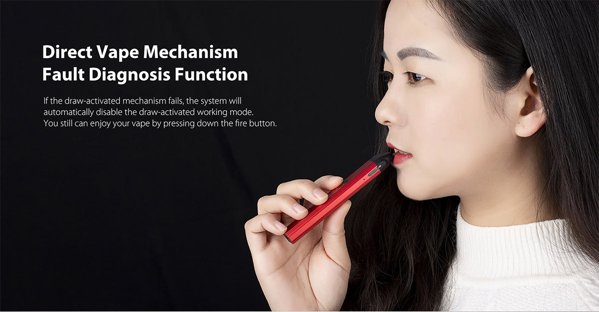 Uwell Caliburn Kit è un primo kit di vaporizzazione per pod di Uwell. Mi dà una sensazione visiva semplice e confortevole con forma snella e corpo snello. Il baccello a forma di trapezio è progettato per adattarsi alle labbra e fatto per il succo di sale. La batteria integrata da 520 mAh supporta un'uscita massima di 11 watt. Con il design dell'interruttore dell'aria, puoi dirigere lo svapo inspirando. Inoltre, se il meccanismo di estrazione non funziona, il sistema disabiliterà automaticamente la modalità di lavoro attivata dal tiraggio. Puoi premere il pulsante di fuoco per svapare. La cartuccia del pod ha una capacità di 2 ml e viene fornita con un sistema di riempimento superiore in grado di ridurre le perdite. Questo kit vape pod è perfetto per i principianti.